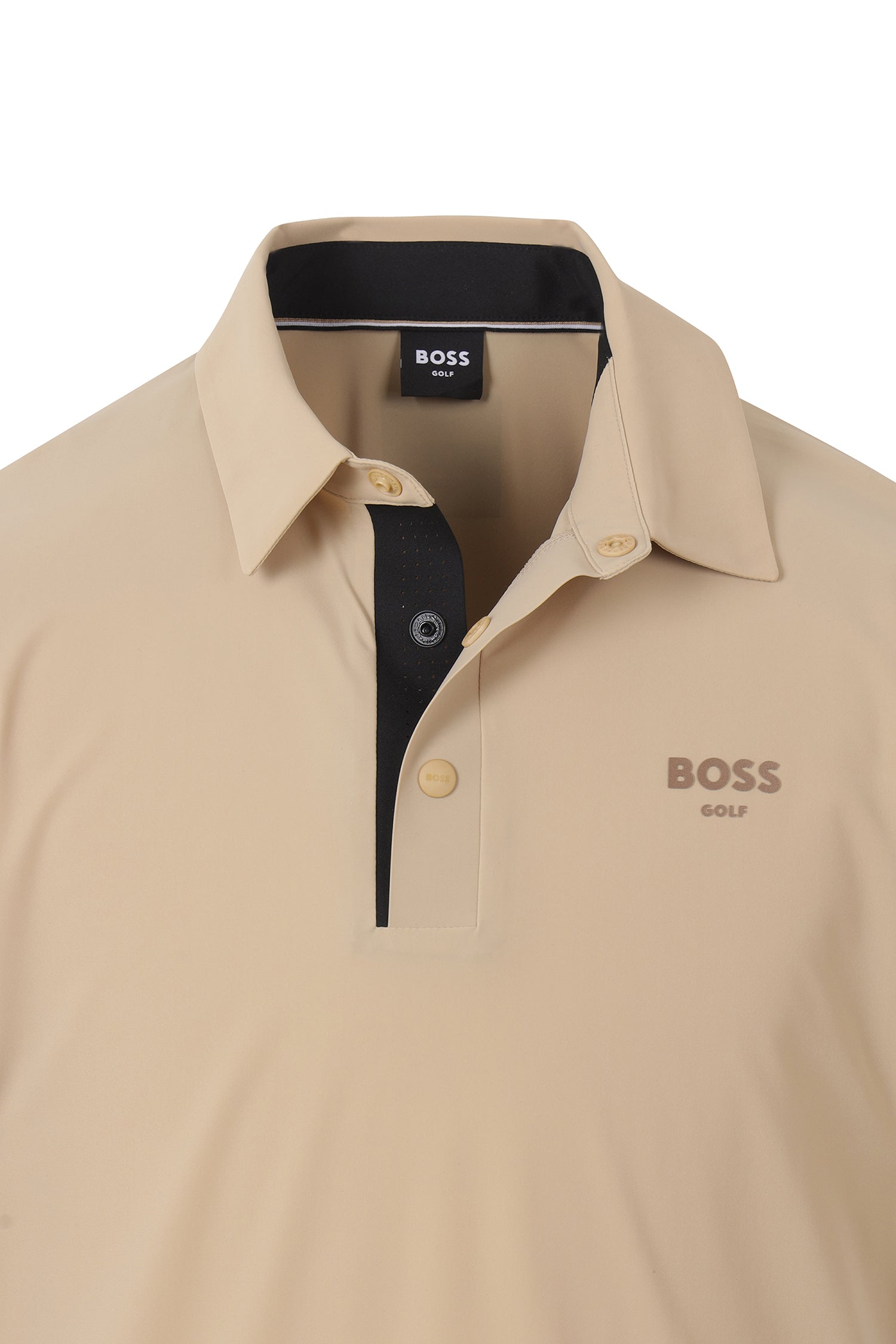 左胸のシャイニーBOSS GOLFロゴがアクセントとなり、さりげない高級感を演出します。