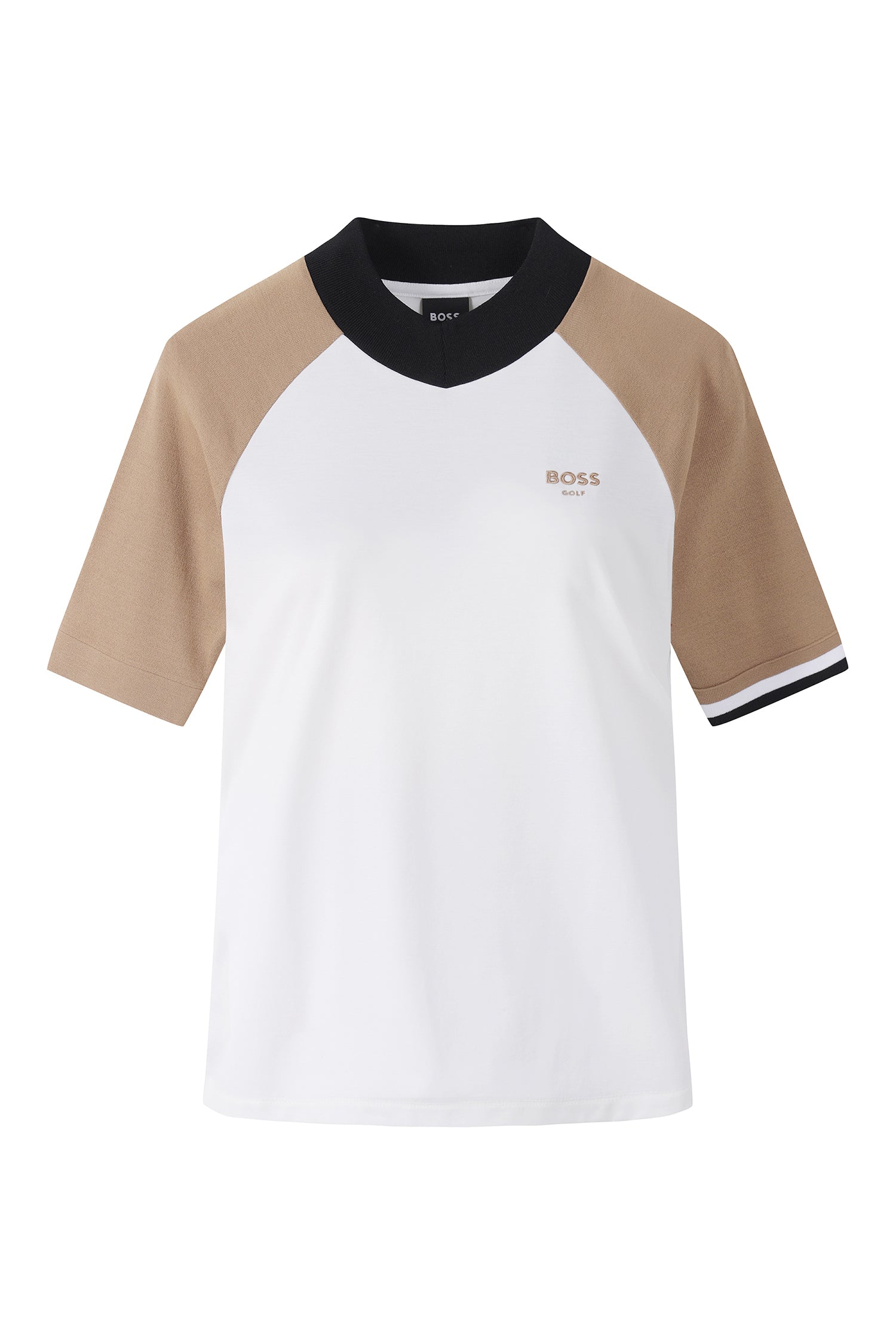 ボスゴルフの洗練されたカラーバランスが魅力のラグランスリーブTシャツ。